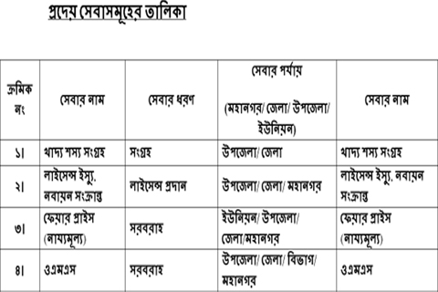 সেবার তালিকা